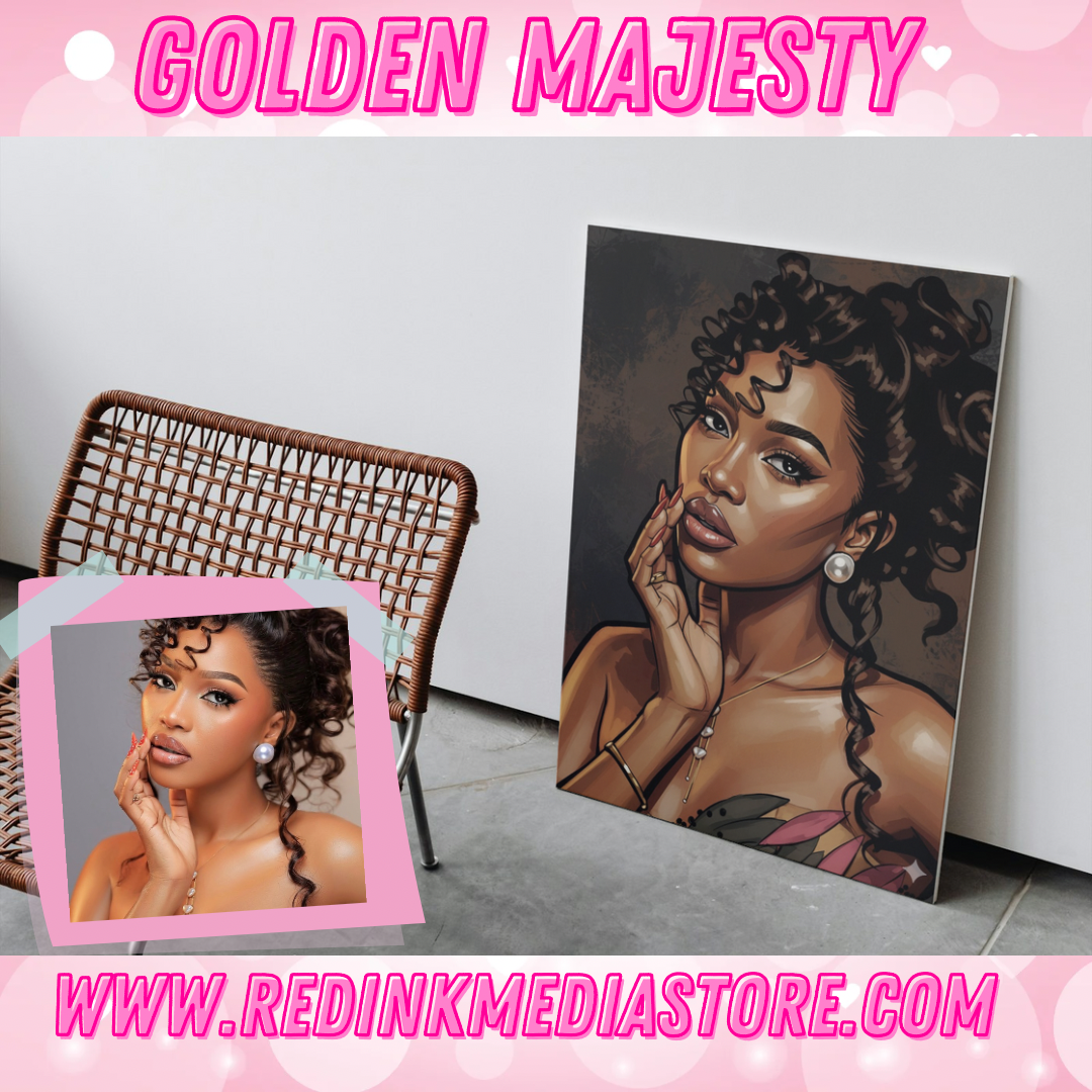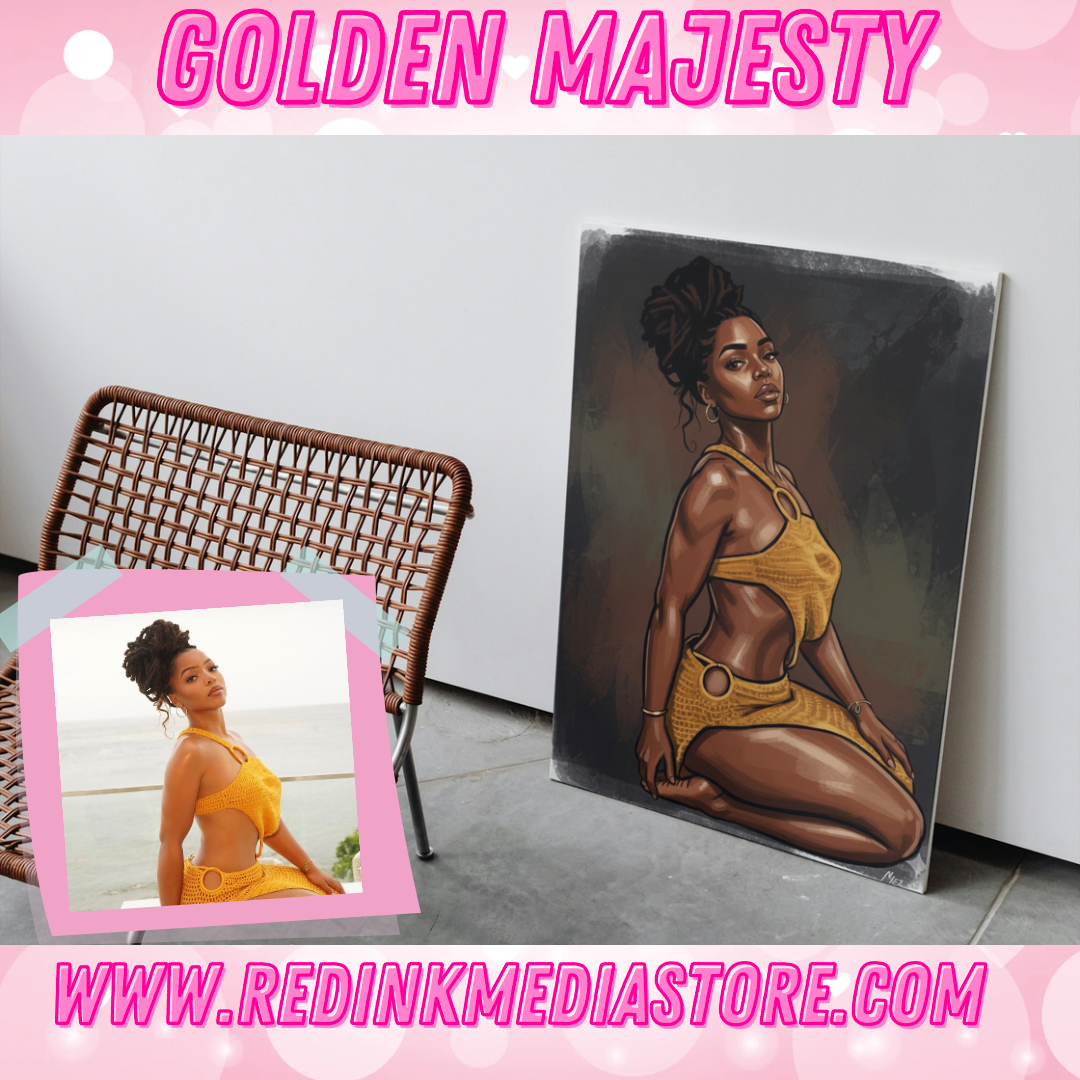 A tribute to radiant confidence and inner power. Golden Majesty embodies self-worth — the glow that comes from within, unshaken and unapologetic. The golden hues reflect abundance, while the posture speaks grace and pride.
